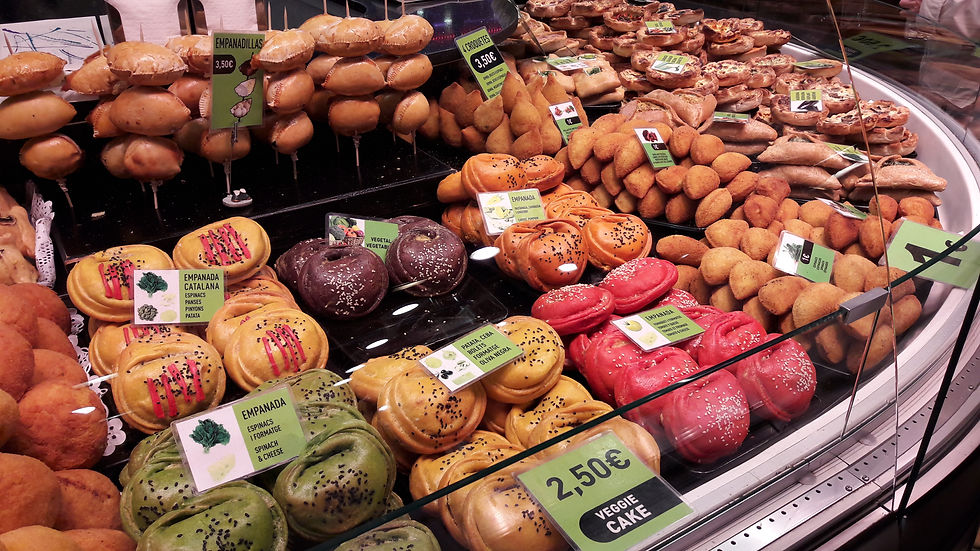 On trouve dans ce marché de nombreux cornets contenant charcuteries, fromages, ou encore plats complet.
